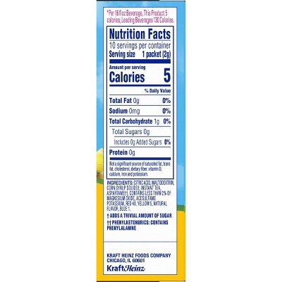 5 calories per 1/8 packet. 90% fewer calories than leading beverages. Carbs in crystal light single packet natural lemonade drink mix gluten free. Crystal light (all flavors including powders); Is crystal light gluten free?
